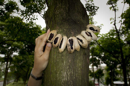 “培育這些蠶蛹中的周氏嚙小蜂必須將溫度始終控制在25℃左右,大約在20至25天之后,蠶蛹體內的周氏嚙小蜂就基本發育成熟了。”前來送天敵進園的上海市綠化管理指導站的技術人員解釋,這時就可以把裝著蠶蛹的蠶繭穿在一起,掛在樹上,等待周氏嚙小蜂們“破繭而出”。