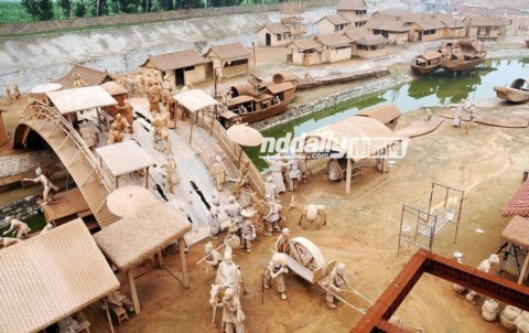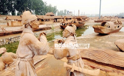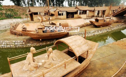 河北省唐山市豐潤區農民企業家秦仕平從2008年開始,聘請泥塑專家和工人用泥塑的方式再現《清明上河圖》實景。據了解,整個作品長300米,寬60米,人物、建筑等按照三分之二的比例塑造,目前已完成整幅畫卷內容的40%以上。