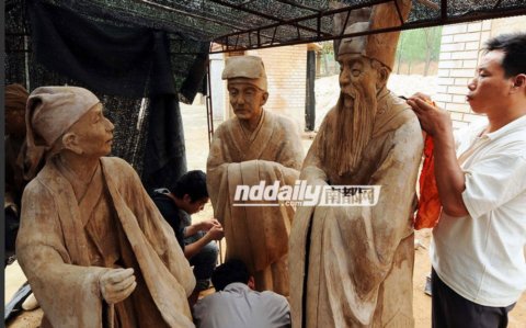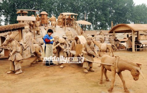 正在創作中的《清明上河圖》泥塑實景(7月14日攝,圖片來源于南都網)