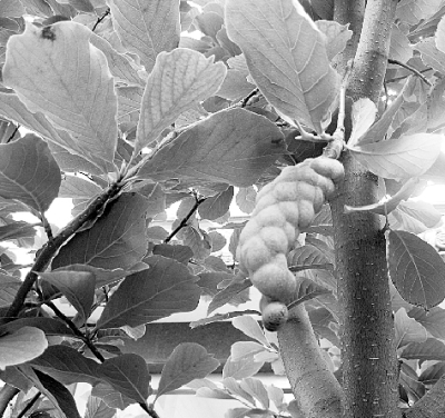 近日,滄州大化賓館門前的兩棵白玉蘭樹,竟然結出了果實。青綠色的果子約有10厘米長,果形千姿百態(tài),有的如串串葡萄,有的呈麻花狀,有的則怪模怪樣。