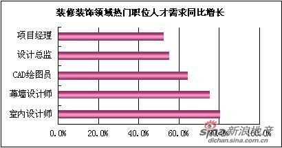 2010年上半年商品房和二手房的成交量不斷攀升的同時,也為裝修裝飾行業(yè)的人才帶來了更多的就業(yè)空間。建筑英才網(wǎng)后臺數(shù)據(jù)顯示,上半年裝修裝飾行業(yè)需求量最大的職位分別是室內(nèi)設(shè)計師、幕墻設(shè)計師、CAD繪圖員,其同比增長了80.8%、75.5%、64.4%。