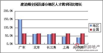 如果建筑設(shè)計類人員是注重建筑業(yè)“軟性”建設(shè),工程施工類技術(shù)性人員就是將“軟性的工程”變成“硬性”的實體,建造師就是這一領(lǐng)域的代表性技術(shù)人才。據(jù)了解,目前我國具有建造師資格證的人員不到15萬,而建筑企業(yè)對該職位的需求絕對不只是這個數(shù)目。上半年的建造師,同比增長了63.6%,以廣東、北京、長三角區(qū)需求量最大。今年上半年廣東建造師需求同比增長了150%,北京同比增長了61.4%,長三角區(qū)同比增長了60.6%。