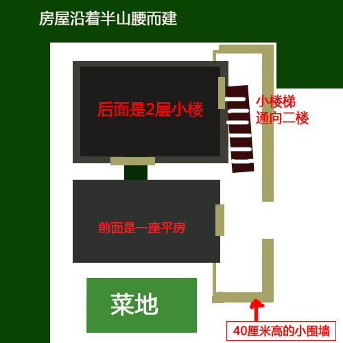 玉泉路1號房屋平面示意圖(前面平房現(xiàn)在住著李水珍女士一家,后面的2層小樓是林家的)