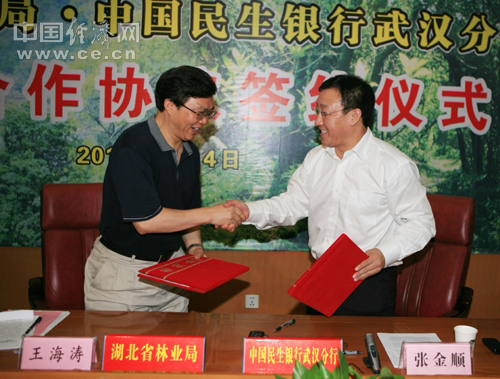 中國民生銀行武漢分行與湖北省林業(yè)局戰(zhàn)略合作協(xié)議簽約儀式。