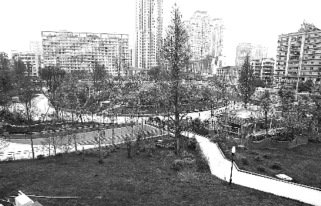 昨日下午,記者在現場看到,在建的小龍坎廣場被擋板圍住,路面的街心公園無人施工,也并未對外開放。街心花園里只有中心區域留有部分坪,栽種的大樹依然挺拔。不過,草坪四周都是泥土沙石,到處堆放著建材,還有準備鋪裝的石板路材料。在花園四周,則是狹窄的車行通道。