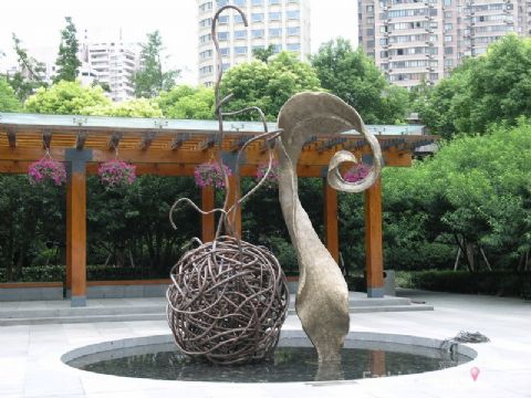 美國女雕塑家芭芭拉·愛德斯坦嘗試用雕塑來表現(xiàn)水。她的作品《生命之水》陳列在靜安雕塑公園長廊南的花架前廣場。《紅樓夢》主角曾把女人比作“用水做的”;而此刻,這位來自西方的女性,竟然能夠用至硬的“金”——銅與鐵來塑造至柔的水,以及水獨(dú)有的無處不在的張力,體現(xiàn)出“上善若水”的東方精神。