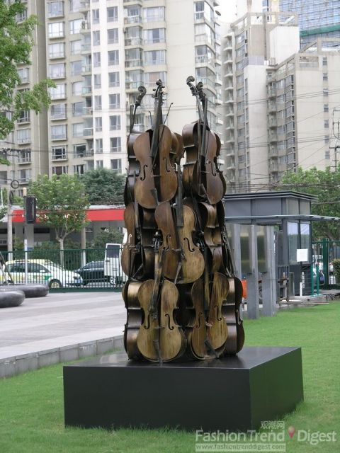雕塑和音樂,繆斯九神中一對性格大異的孿生姐妹,雕塑是“靜止的音樂”,而音樂是“躍動的雕塑”。但是,被載入西方藝術(shù)史冊的藝術(shù)大師阿曼·皮埃爾·費(fèi)爾南德茲的系列參展作品《男低音》、《音樂之神》、《音樂的力量》、《智慧之音》、《美麗時(shí)刻》等,打破了雕塑和音樂的“個(gè)性界限”,把這對姐妹合成了一體:你中有我、我中有你。他把四、五把提琴進(jìn)行了不同方式的切割、分解、組合、集成,賦靜態(tài)雕塑以音樂的靈魂及功能。這一連串美妙的“音樂雕塑”,被綴在靜安雕塑公園“七彩花帶”作成的“五線譜”上,人們能夠從中“聽”同時(shí)也“看”到提琴奏出的各種主題旋律。