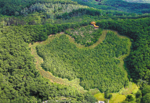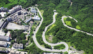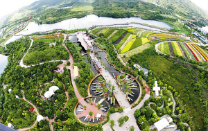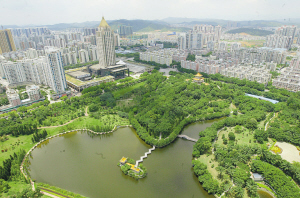 從郁郁蔥蔥的蓮花山眺望花團錦簇的城市中心區(qū)。