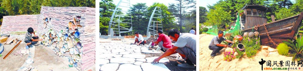 9月15日上午,青島園展區內,工人們在緊張忙碌著。記者看到,兩艘鐵制的帆船已經建造完成,兩艘帆船一大一小,高有五六米,名字分別叫“和諧”和“青島”。帆船底部鋪設的是大理石,其顏色與海浪的顏色相似,制造一種海浪的景致。帆船底部還將建設循環的水系,營造帆船在水中“蕩漾”的動感效果。市花耐冬也將在青島園內亮相,與公園原有的雪相呼應,把青島園裝點得更加美麗。