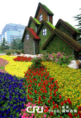 2010年9月15日,北京西單路口以“和諧家園”為主題的立體花壇。國慶前夕,北京長安街沿線將建11處立體花壇。9月25日將全部完工建成。