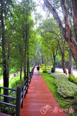 麓湖路人行道增加了1.5米寬的塑棧道。海國(guó)攝