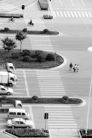 最“變態(tài)”斑馬線驚現(xiàn)河南 被3條綠化帶截斷(圖)