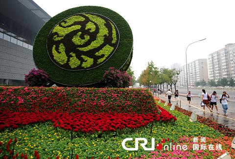 2010年9月15日,北京西單路口以“和諧家園”為主題的立體花壇。國慶前夕,北京長安街沿線將建11處立體花壇。9月25日將全部完工建成。