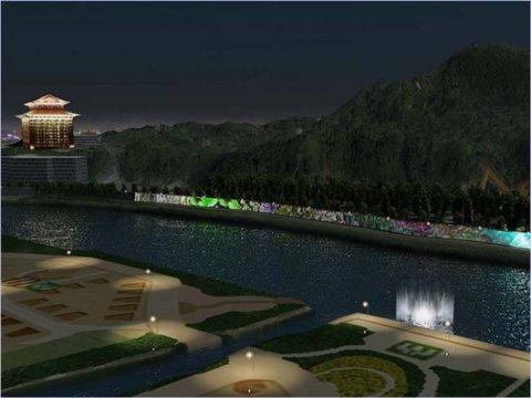 ▲河岸邊規劃了堤壁光雕區,讓夜間搭船的民眾具有別于以往的感受。