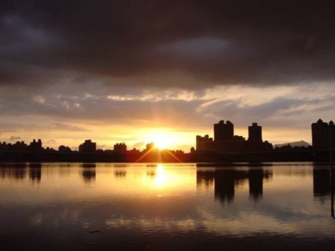 ▲從藍色公路搭乘渡輪參觀花博,可欣賞到美麗的夕陽與河川沿岸綠美化景觀