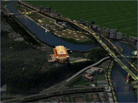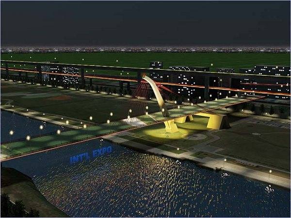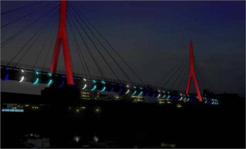 藉由光影變化與雷射光投射,搭配碼頭周邊水管橋、捷運橋與承德橋的帶狀光橋,優美的弧線,如同繁星灑下河面,橋體輝映在河面上的倒影,十分璀璨。具有現代感的橋梁光影投射與絕美光雕的光束變化,如同彩虹般照亮臺北市的夜空,增添一股詩意與質感,這必定是2010臺北花博絕不能錯過的景色之一。