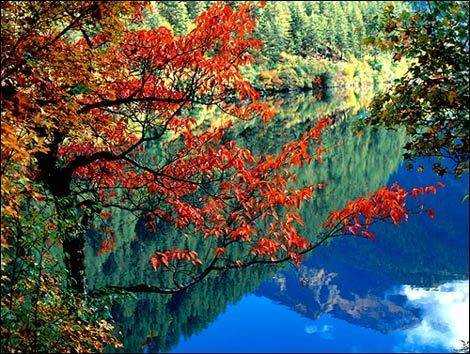 秋色醉人,九寨溝為最。如果你還沒有去過九寨、黃龍,那么現在應該是最佳的時機了,因為秋季的九寨溝是個多彩的世界。每到秋天,這里便成了彩色的海洋,踏入山門,仿佛走進一個龐大的色彩王國。谷底到山巔,3000米高差,五大植被分布帶,千葉萬樹,色彩紛呈,一樹引領,滿溝呼應,700平方公里山林都躍動起來。