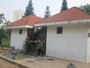 前日下午,記者在海口濱海公園里看到,公園中央有一個外觀很漂亮的公廁,4名工人正在用磚砌墻將公廁的過道封死。記者走近發現,該公廁的玻璃窗破損嚴重,一陣風吹來,從公廁里傳出陣陣臭味。一些在公園散步的人看到公廁被封,紛紛上前向工人詢問情況。“公園內唯一的公廁被封了,以后我們怎么上廁所呀?”一位年輕女士疑惑地說。“哎,這個公廁太臟了,確實該整治了,不過也不應封了呀?”一位大媽說。工人稱他們只是打工的,不知道具體情況。