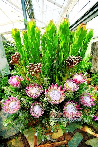 花形如皇冠般的南非國花帝王花,被譽為全世界最富貴華麗的鮮切花。現在,無論是“帝王”、“皇后”,還是“金粉”,3000株各色名貴的帝王花品種都可以在華南植物園展覽溫室觀賞到。