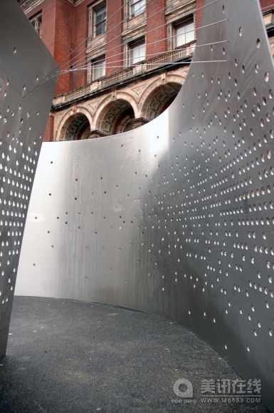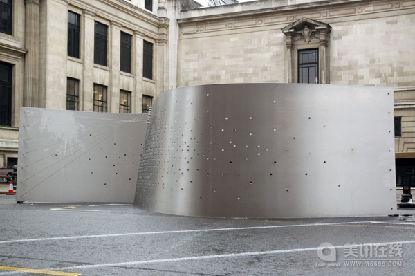 Lifschutz Davidson Sandilands為倫敦建筑節展覽路上的活動創建了一個生動的展示。這個建筑小品于活動開始當天(6月21號)的較早時間安裝,活動是沿著倫敦的展覽路。這個作品由2張大型穿孔薄片和鍍膜不銹鋼組成,這樣生動外表靈感來源于電壓電纜的機構,這些電壓電纜相互支撐形成一個流動的空間。該建筑小品探究斷開和連接的概念以及設計成適應Chiswick / Hammersmith與泰晤士河之間的種族隔離區域。Lifschutz Davidson Sandilands的工作人員當天一直在現場討論公共建筑小品的問題,此后該建筑小品將被運送到Island Studios重新裝置。Island Studios是Lifschutz Davidson Sandilands的基地。
